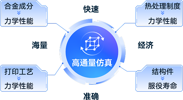 快速构建合金成分、打印工艺,热处理制度与?学性能指标的仿真数据集,加速材料及配套工艺优化