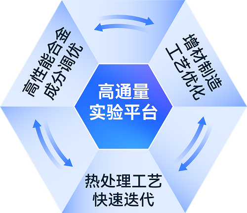 基于AI For Science的第五范式材料信息学,中欧体育自主创新“人工智能+金属材料”研发模式,主要通过四大平台(高通量实验平台、高通量仿真平台、高通量计算平台、高通量力学性能测试平台),借助材料计算、材料信息学、机器学习、深度神经网络等技术手段,加速高端金属材料的研发。